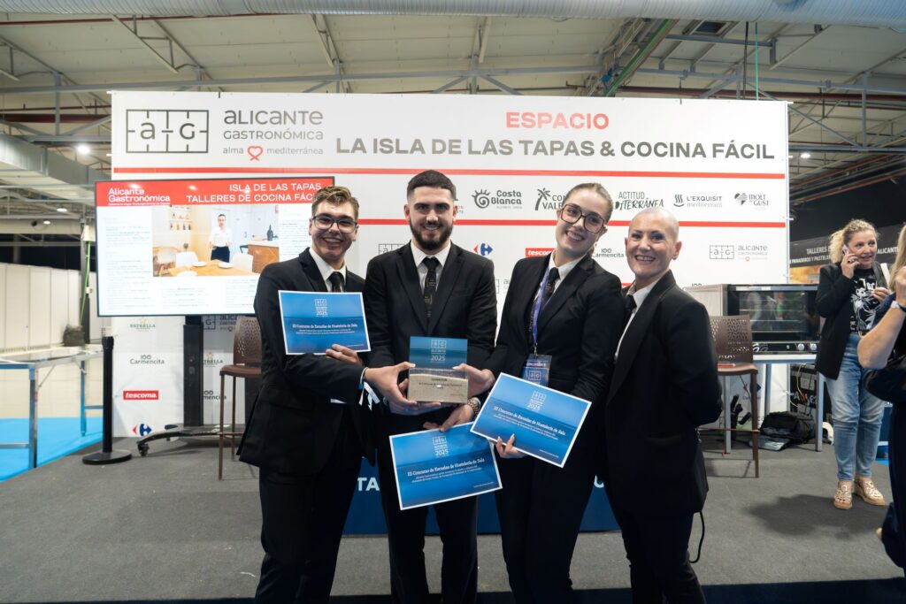 En la jornada de hoy se ha resuelto también el III Concurso de Hostelería en su versión de Sala, que ha recaído en el IES Cap l’Aljub de Santa Pola. Los miembros del equipo ganador han sido Noemí Rodríguez Elster, Izán Catalán y Gonzalo Plaza, acompañados por la tutora María Sánchez Sepulcre. En esta edición, el CIPFP El Canastell (San Vicente del Raspeig) ganó el premio en la edición de cocina, un premio que se celebró el pasado viernes, en la sesión inaugural de la Alicante Gastronómica.